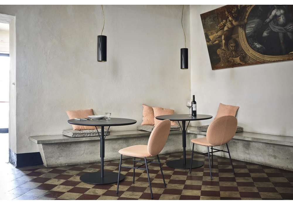 Kelly C von Claesson Koivisto Rune für Tacchini entworfen, ist ein stuhl mit hoher Rückenlehne und Stoff- oder Lederbezug erhältlich mit Rohrmetallgestell, erhältlich in verschiedenen Farben.