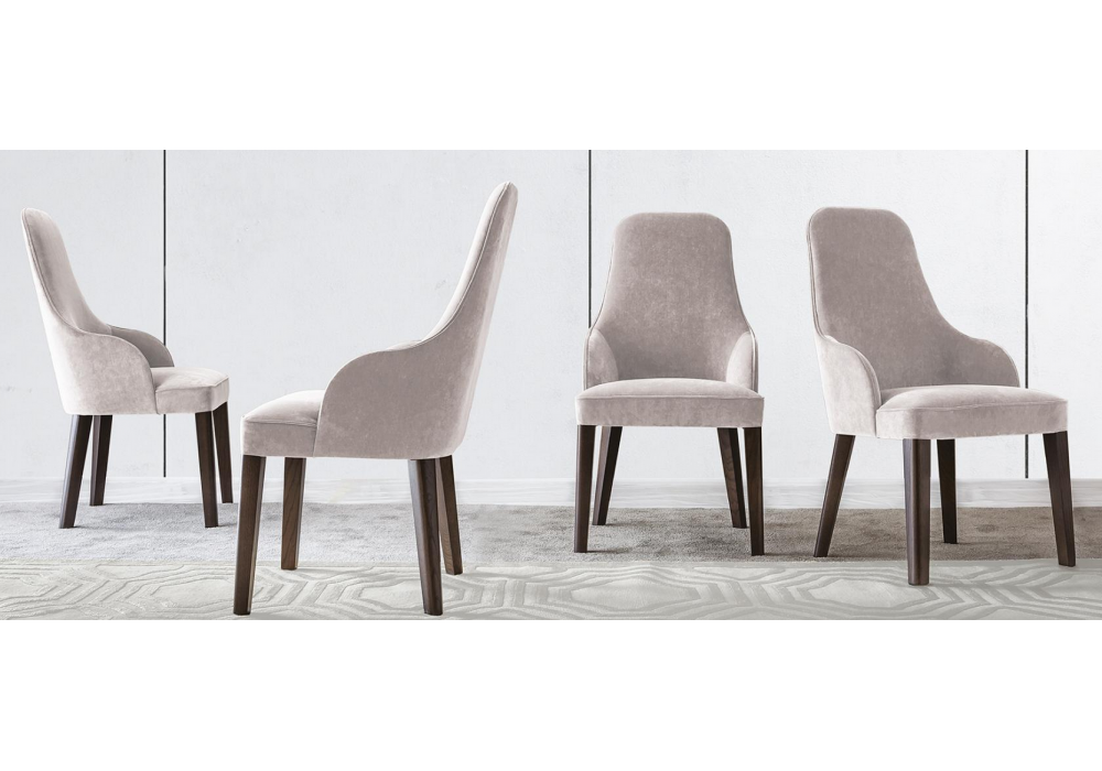 Diana von Castello Lagravinese Studio für Casamilano entworfen, ist ein Stuhl mit einer Struktur aus massiver Buche und gebogenem Sperrholz, einer Polsterung aus Polyurethanschaum und Beinen aus ebenholzfarbener oder gepolsterter massiver Eiche. Nicht abnehmbarer Bezug in verschiedenen Stoffen oder Ledern.