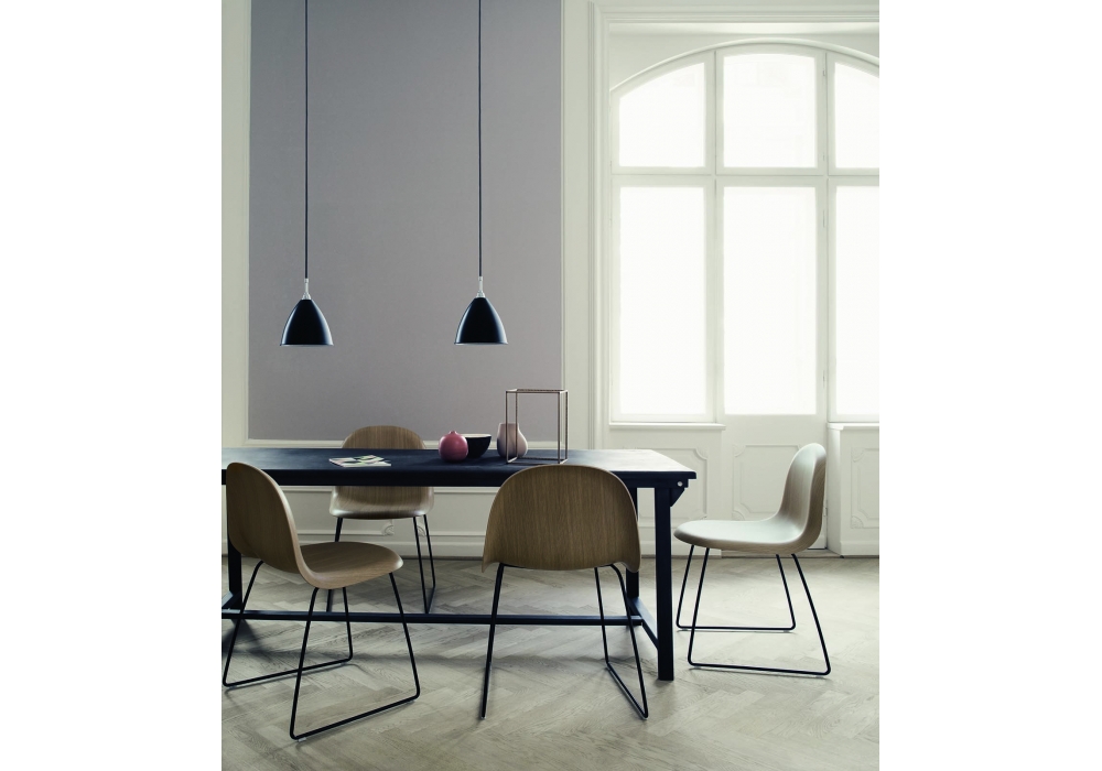 3D Dining von Komplot Design für Gubi entworfen, ist ein Stuhl mit Holzschale und schwarzem oder verchromtem Gestell. Der 3D-Stuhl ist ein minimalistischer Sitz mit einer dreidimensionalen furnierten Holzschale, der sich durch klare Linien, leuchtende Farben und innovativen Materialeinsatz auszeichnet. Verfügbar in mehreren Ausführungen.
