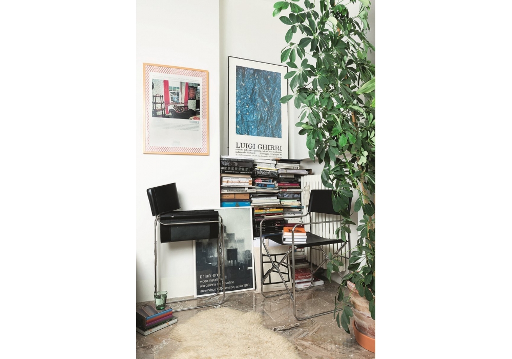 2120 April von Gae Aulenti für Zanotta entworfen, ist ein Stuhl mit Struktur aus 18/8 Edelstahl. Gelenke aus Aluminiumlegierung. Abnehmbare Bezug aus Stoff oder Rindsleder 95.