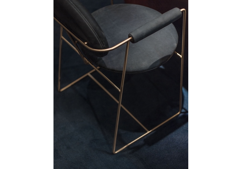 Gemma von Draga & Aurel für Baxter entworfen, ist ein Stuhl mit Struktur aus Metall, Sitz und Rücken aus Buchenholz, Armlehnen aus massiver Buche. Polyurethan-Schaumstofffüllung mit Acrylglasfaser.