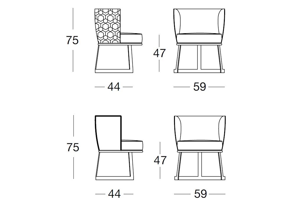 Cloé von Giuseppe Iasparra für Longhi entworfen, ist ein Stuhl mit selbstzentrierendem Drehgestell aus glänzendem oder mattem Metall und Rückenlehne mit oder ohne Steppung aus nicht abnehmbarem Stoff, Samt oder Leder. Verfügbar in verschiedenen Ausführungen und Ausführungen.
