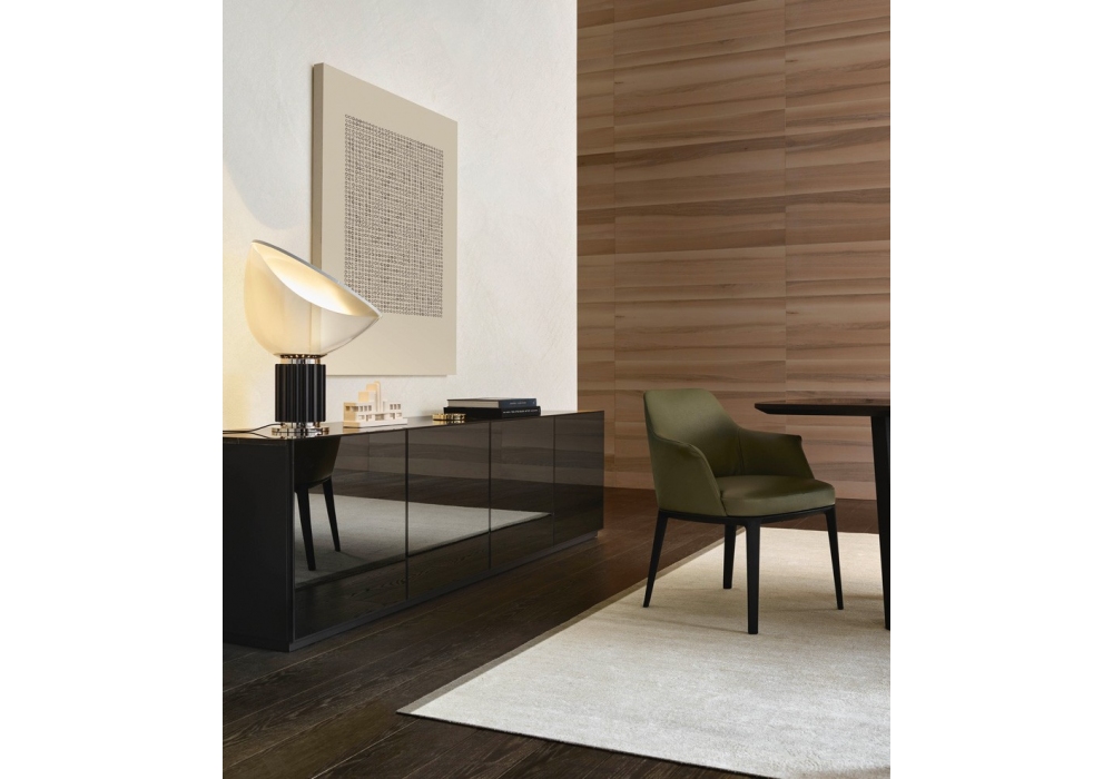 Sophie von Emmanuel Gallina für Poliform entworfen, ist ein Stuhl mit Massivholzstruktur und Stoff- oder Lederpolsterung.