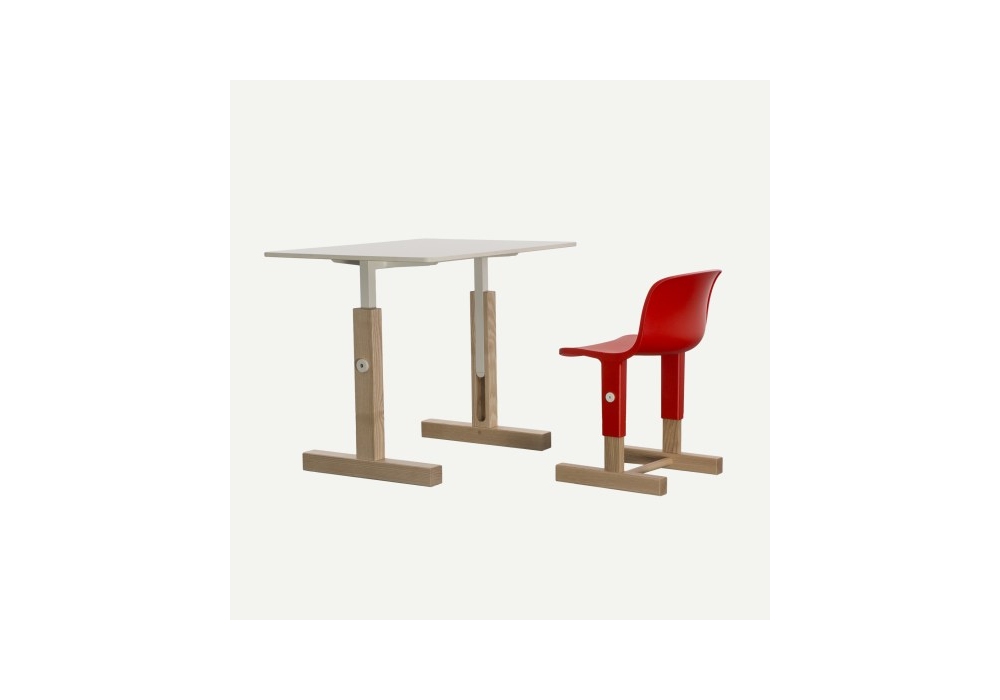 Little Big von Big Game für Magis Me Too entworfen, ist ein Stuhl mit natürlicher Eichenstruktur und Sitz aus Polypropylen in verschiedenen Ausführungen. Stuhl mit verstellbarer Höhe.