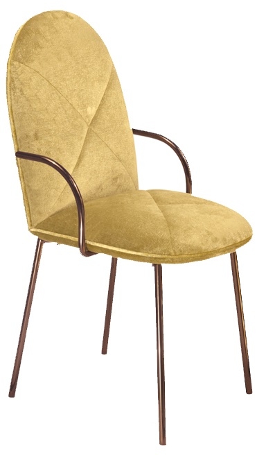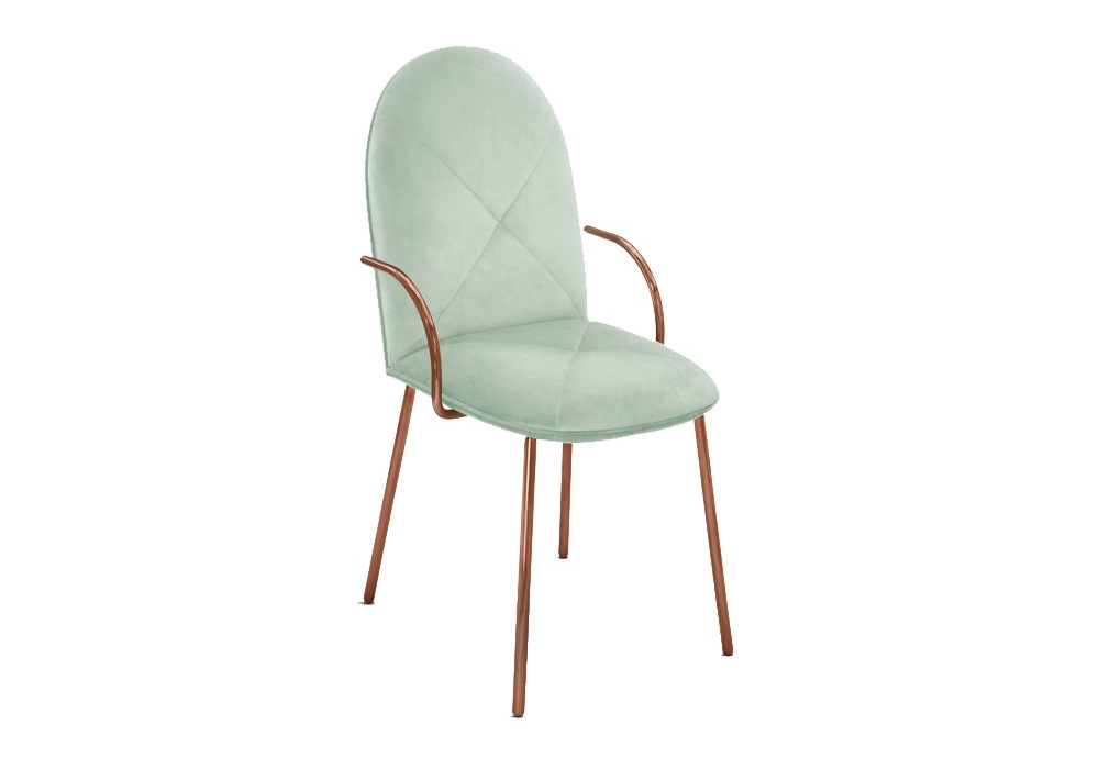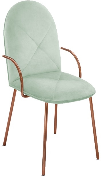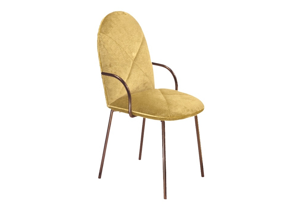 Orion Chair von Nika Zupanc für Scarlet Splendor entworfen ist ein Stuhl mit einer Metallstruktur in Gold oder Roségold. Schaumstoffsitz, gepolstert mit verschiedenen Stoffen.