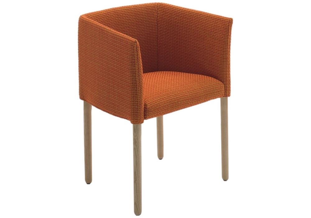Elsie von Francesco Rota für Paola Lenti entworfen, ist einer schöner Stuhl mit abnehmbarer Polsterung in mehreren Bezüge und Holzbeinen. Die Serie Elsie enthält auch einen Sessel die gleichen Ausführungen kennzeichnen.