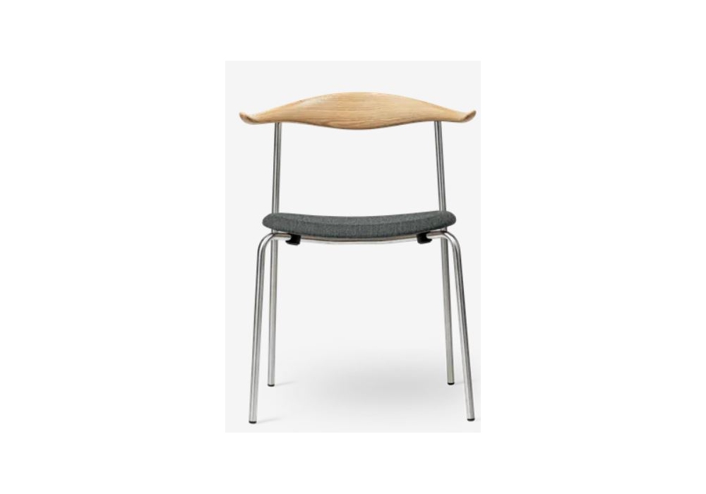 CH88P von Hans J. Wegner für Carl Hansen & Søn entworfen, ist ein Stuhl ohne Armlehnen mit einer Struktur aus Edelstahl oder schwarzer Pulverbeschichtung. Rückenlehne aus Buche oder Eiche in verschiedenen Ausführungen. Gepolsterter Sitz mit Stoff- oder Lederbezug.