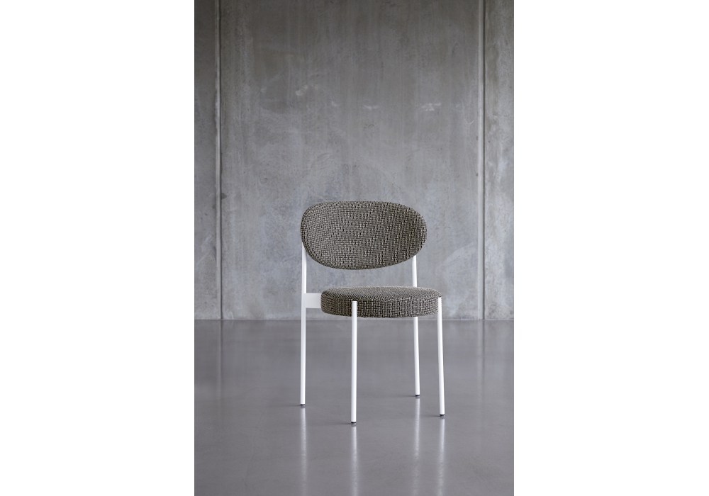 Series 430 von Verner Panton für Verpan entworfen, ist ein stapelbarer Stuhl komplett gepolstert und mit verschiedenen Stoffen oder Leder bezogen. Lackierte Metallstruktur mit Filzfüßen.