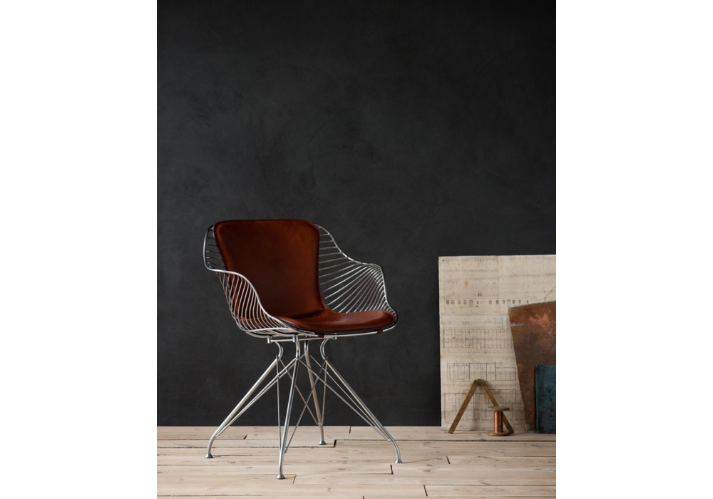 Wire von Overgaard & Dyrman für O&D entworfen, ist ein Stuhl mit Struktur aus mattschwarzem pulverbeschichtetem Stahl oder satin verchromter Stahl. Die Wire Kollektion ist mit einer Auswahl von 3 exklusiven Lederarten (Yellowstone, Matstone oder Elegance) in insgesamt 9 Farben erhältlich. Auch verfügbar in 2 Höhen.