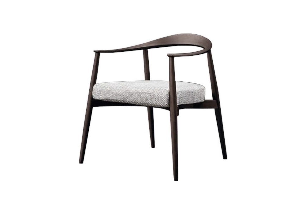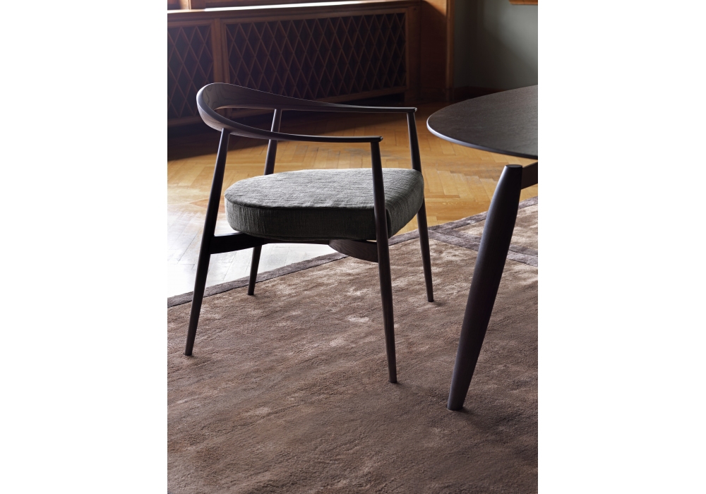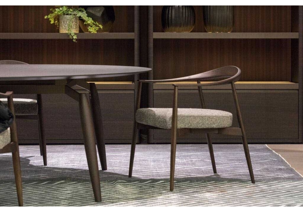 Tekton von Matteo Nunziati für Natevo entworfen, ist ein Stuhl mit Rückenlehne und Armlehnen aus Holz und Sitzkissen mit komplett abnehmbaren Bezüg aus Stoff oder Leder.