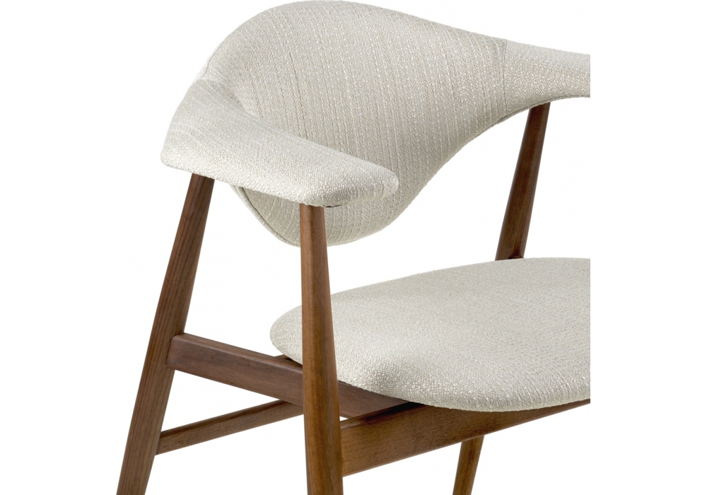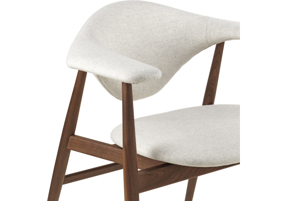 Masculo, von GamFratesi für Gubi entworfen, ist einer Stuhl aus Holzgestell in verschiedenen Ausführungen. Bezug in verschiedenen Arten von Stoff und Leder.