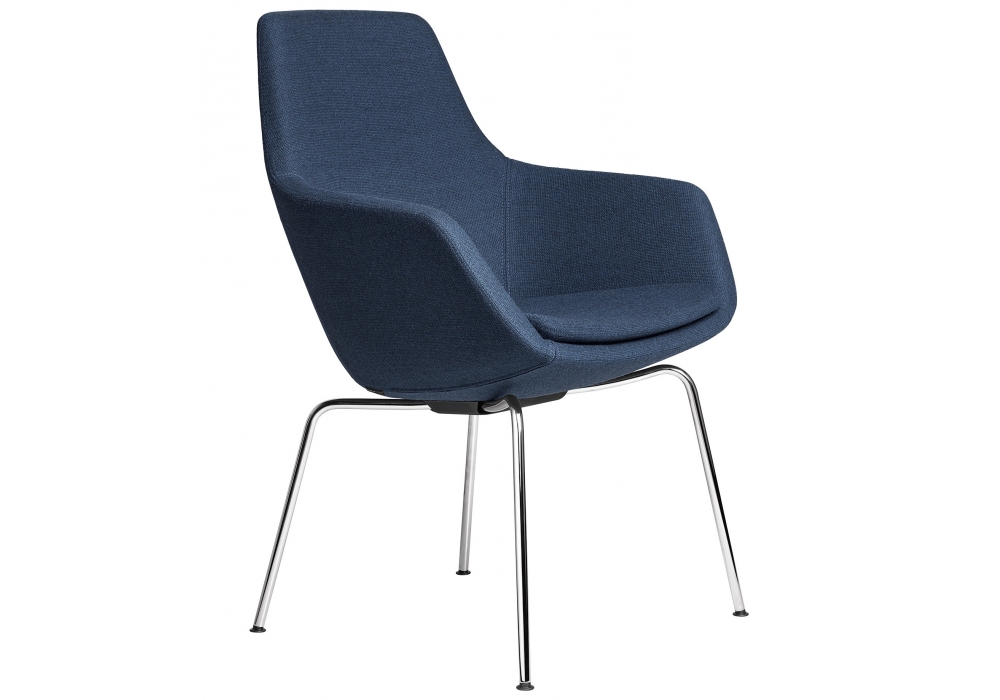 Little Giraffe™ von Arne Jacobsen für Fritz Hansen entworfen, ist ein Stuhl mit Beinen in Chrom oder schwarz pulverbeschichtet und Bezug verfügbar aus Stoff oder Leder.