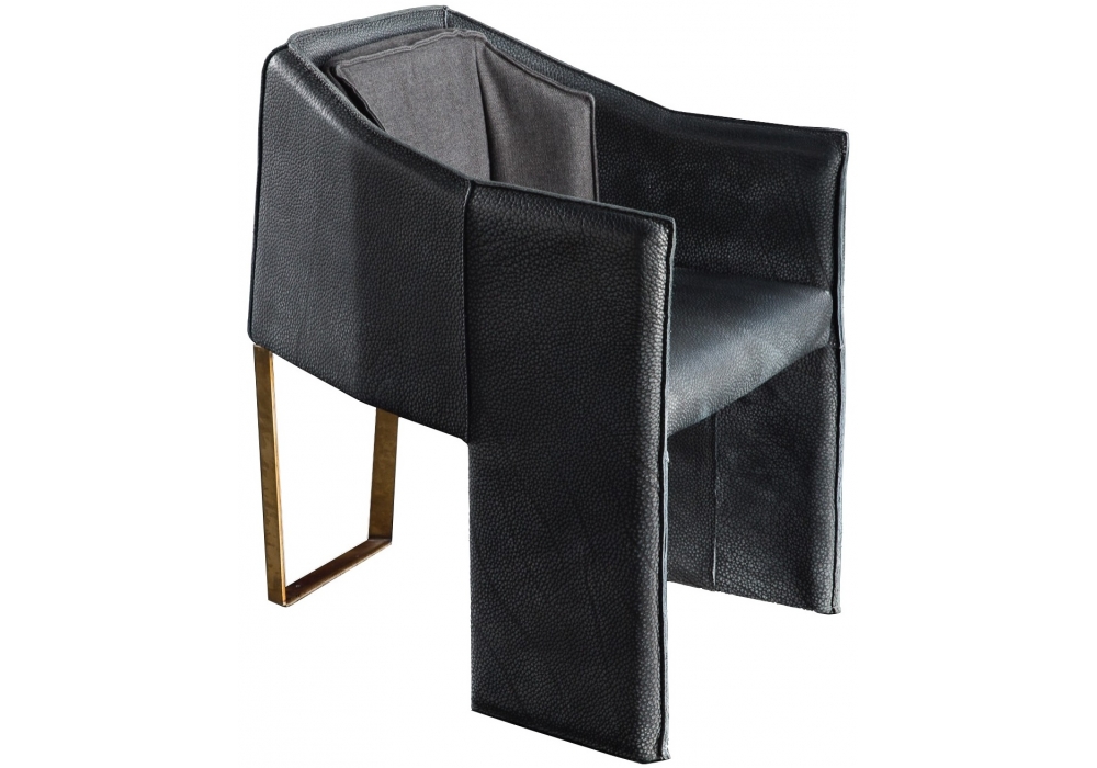 Ketch von Massimo Castagna für Henge entworfen, ist ein Stuhl mit mit Stahlrücken Bein aus brüniertem Messing. Bezug aus Leder.