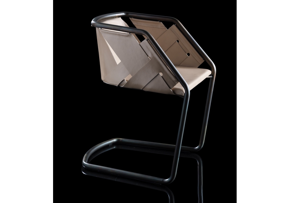 Strip Chair von Massimo Castagna für Henge entworfen, ist ein Stuhl mit Gestell aus schwarz gebürstetem Stahl oder brüniertem Messing von Hand. Bezug in Leder. Auch in zwei verschiedenen Abmessungen erhältlich.