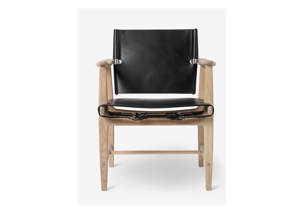 BM1106 Huntsman Chair, von Børge Mogensen für Carl Hansen & Søn entworfen, ist einer Stuhl mit Holzstruktur verfugbar in verschiedenen Ausführungen. Unterstützt in Edelstahl oder Messing. Sitz und Rückenlehne aus Leder. Die Dübel an den Beinen sind immer in kontrastierender Ausführung.