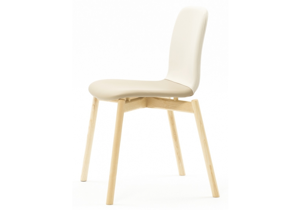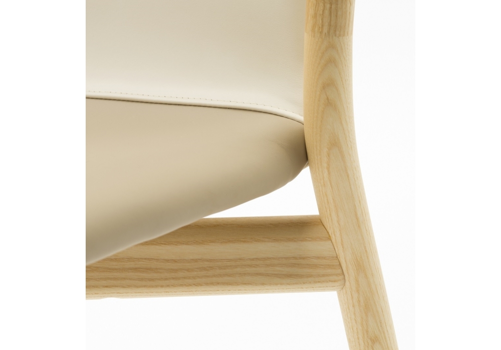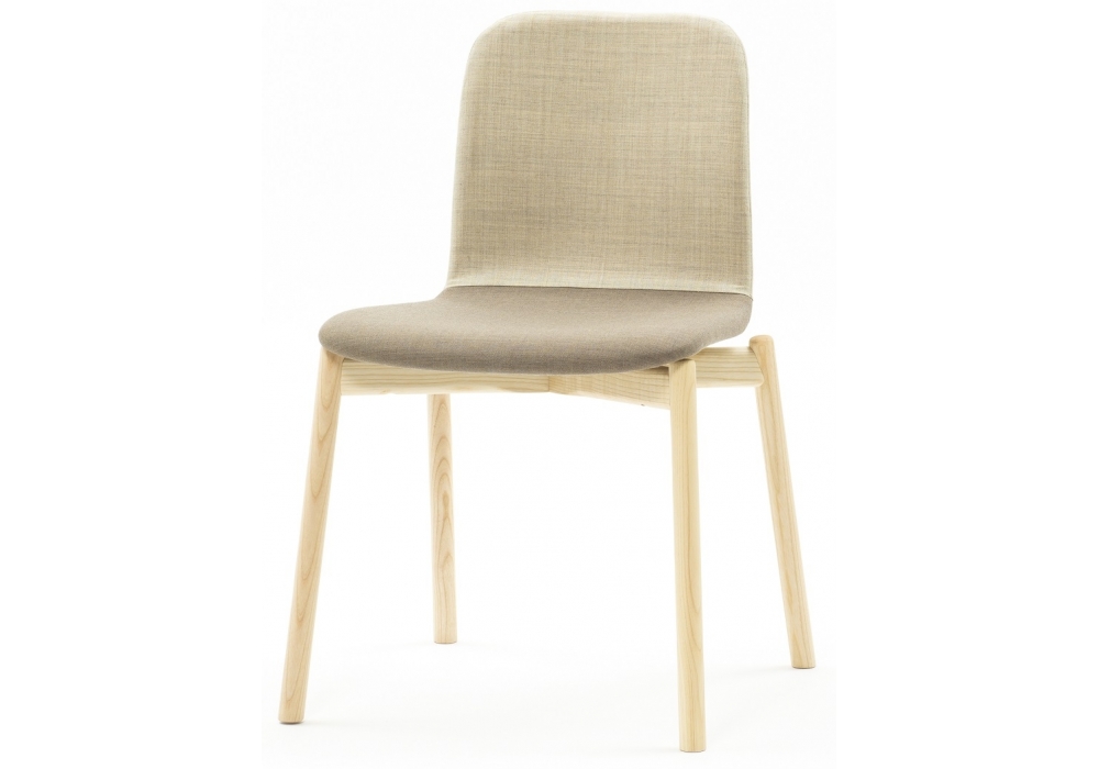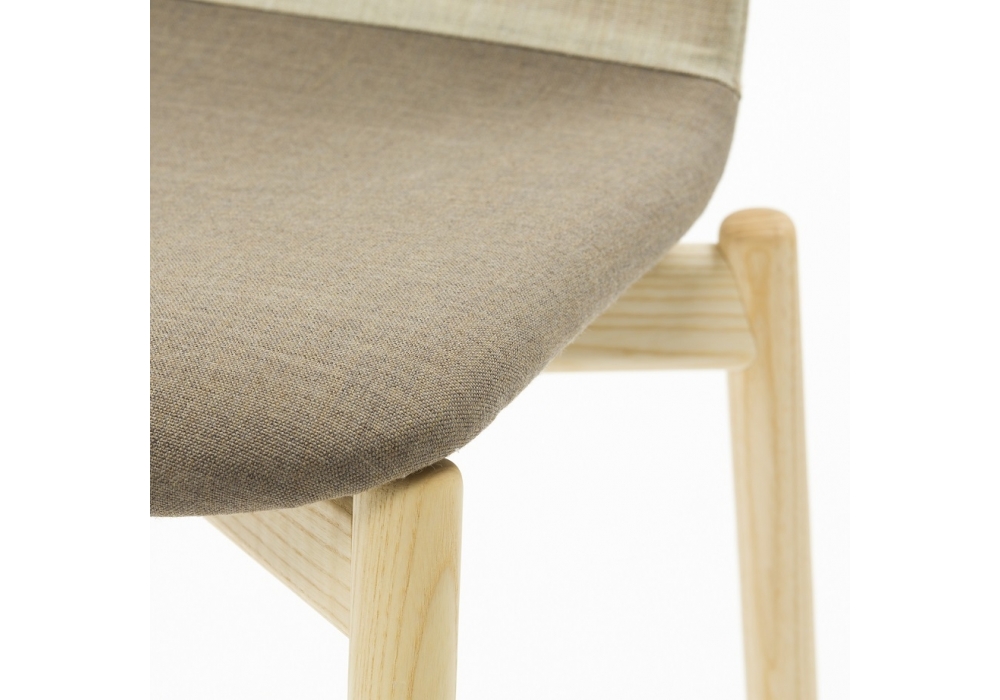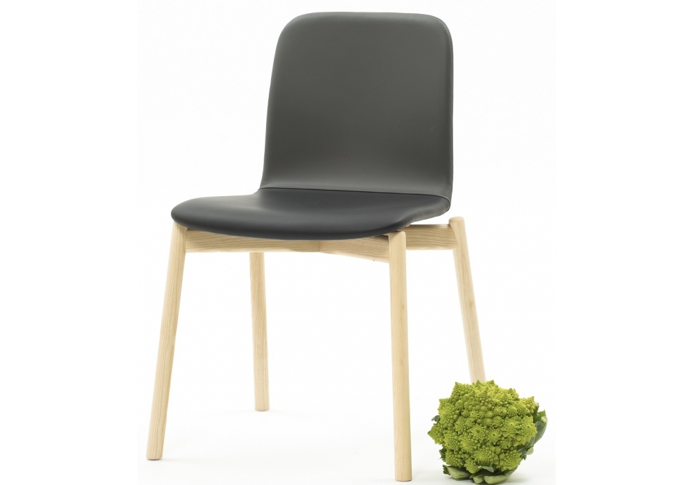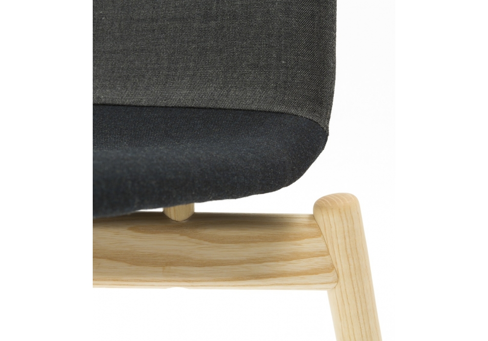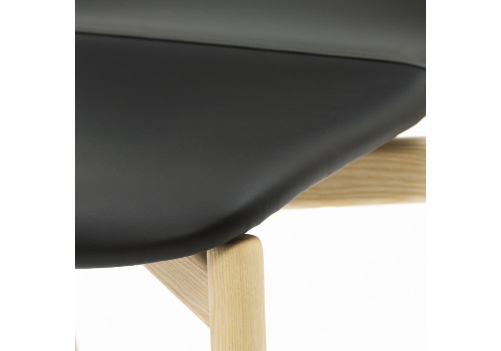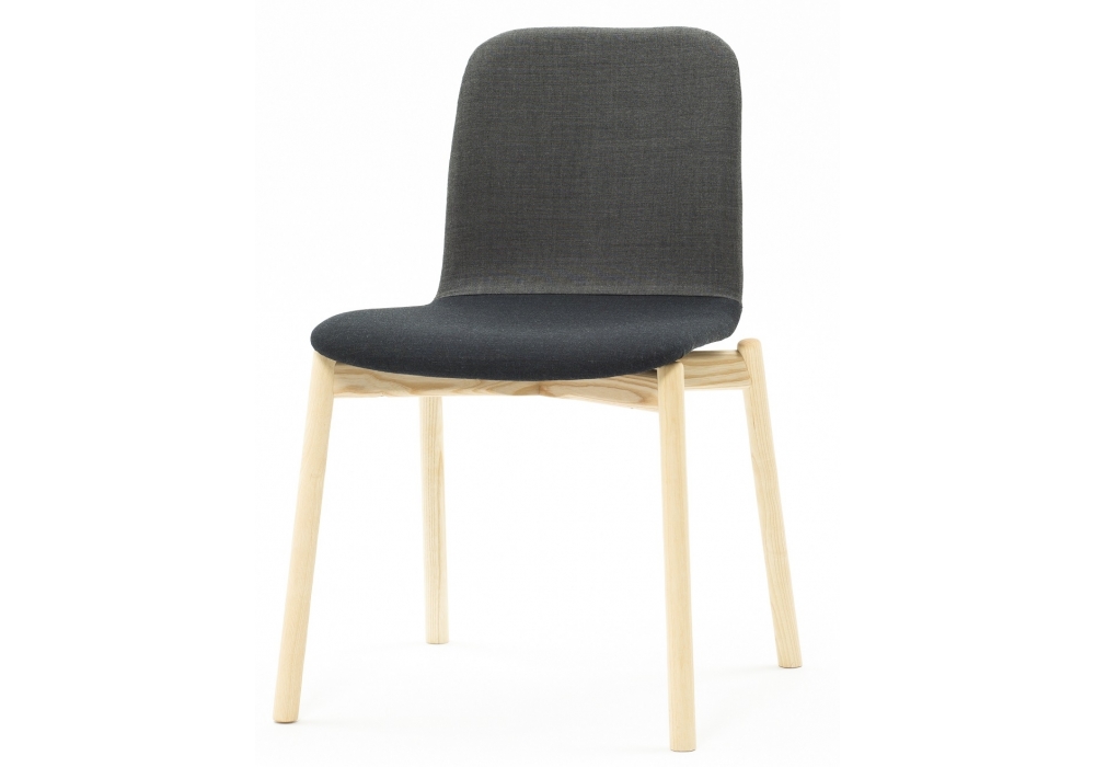 Two Tone von Ichiro Iwasaki für Discipline entworfen, ist ein Stuhl aus Esche mit natürlicher oder schwarz gebeizter Oberfläche. Gepolsterter Sitz und Rücken mit Stoff- oder Lederbezug in einfarbiger oder zweifarbiger Ausführung.
