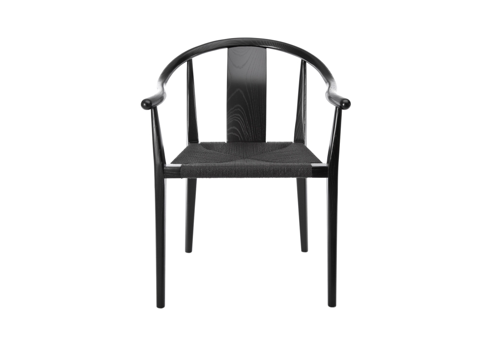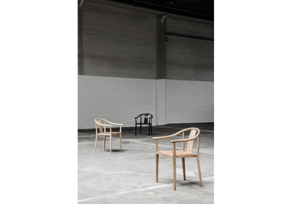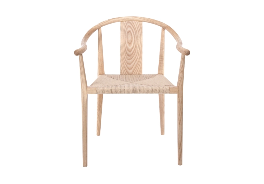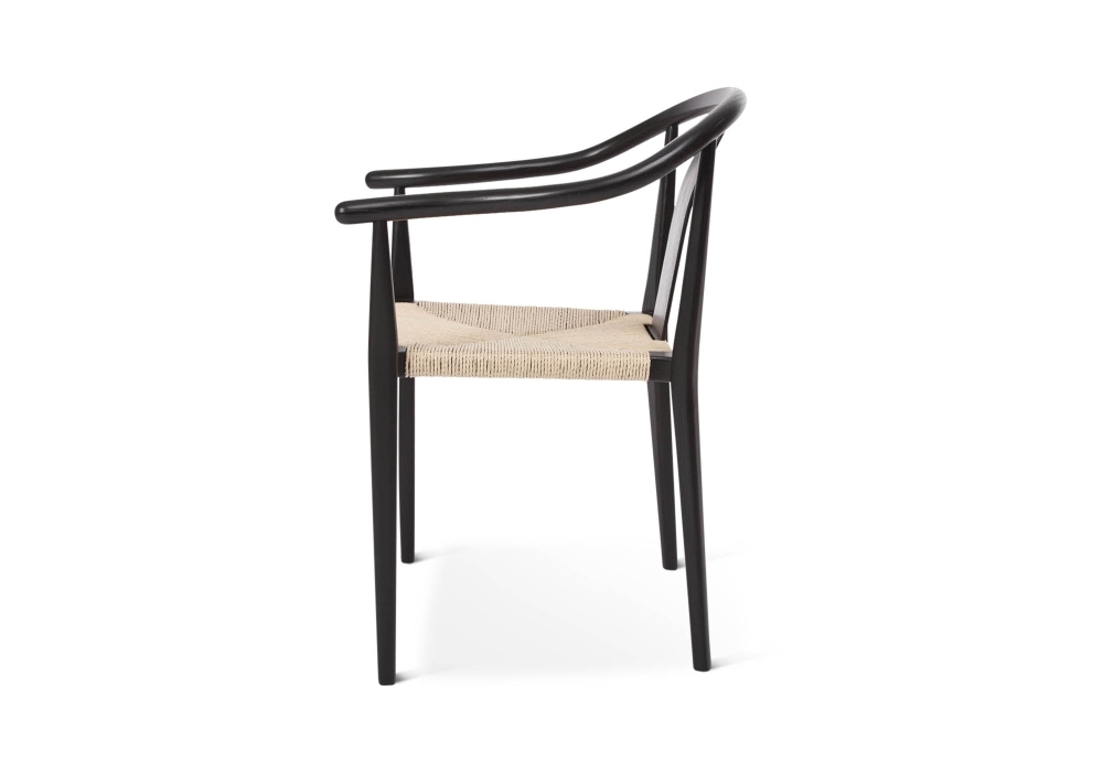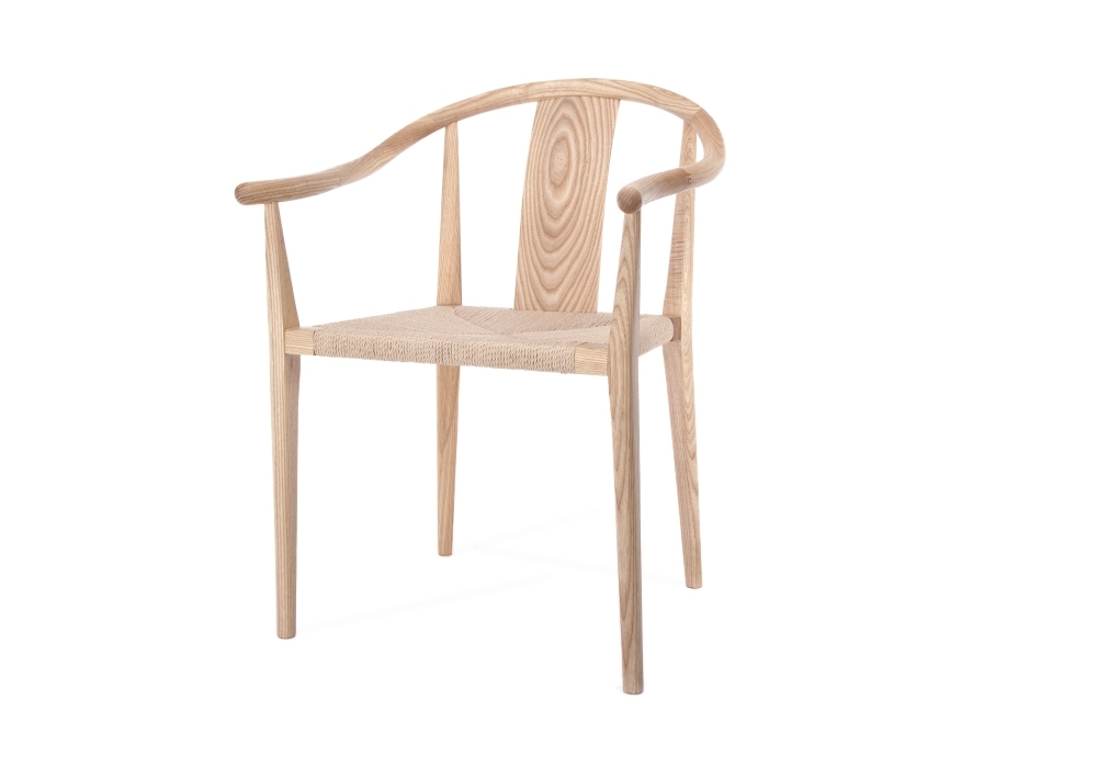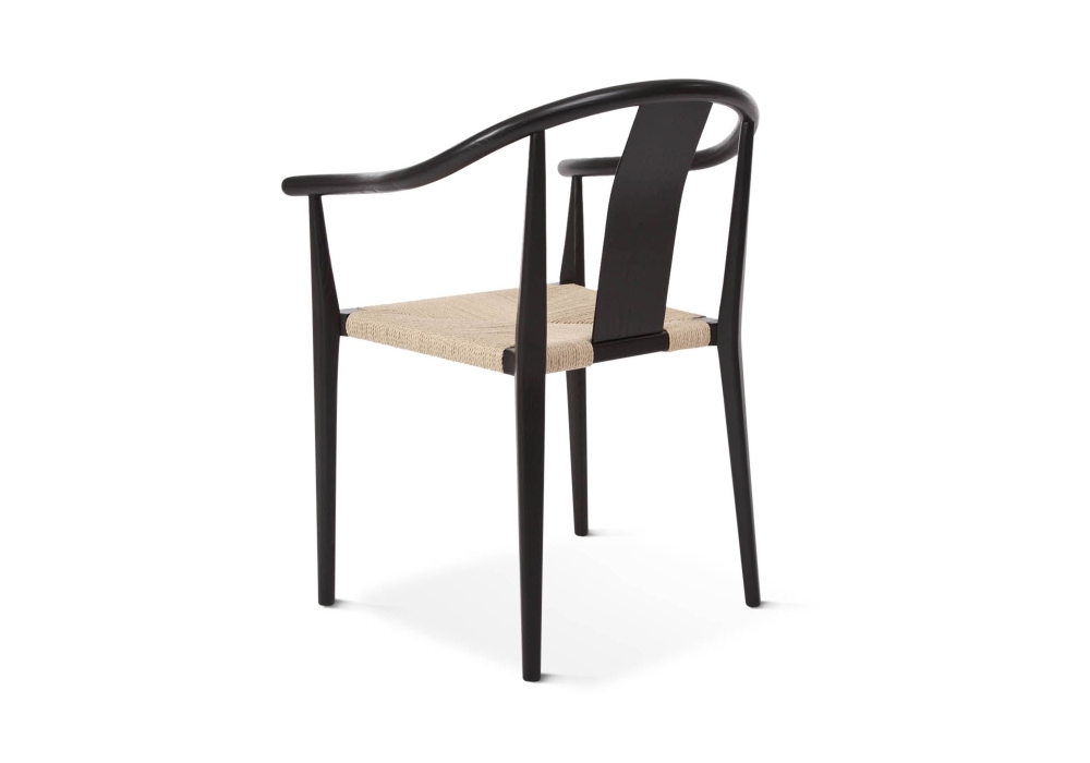 Shanghai Dining Paper Cord, entworfen von Rune Krøjgaard und Knut Benedik Humlevik für Norr11, ist ein Eschenstuhl, der in natürlichen, schwarzen oder geräucherten Ausführungen erhältlich ist, während der Sitz in einem Seil in natürlichen oder schwarzen Ausführungen erhältlich ist.