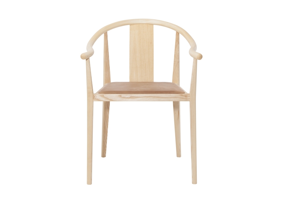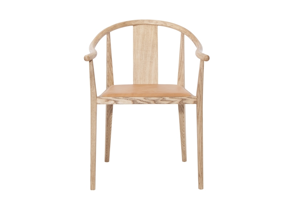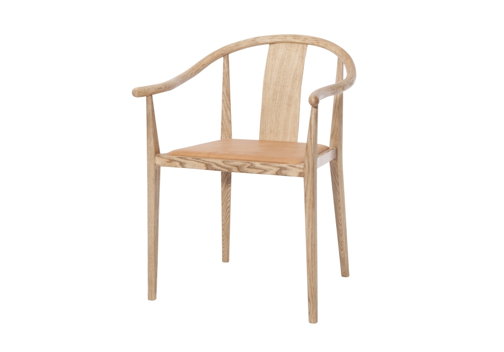 Shanghai Dining Leather, entworfen von Rune Krøjgaard und Knut Benedik Humlevik für Norr11, ist ein Eschenstuhl, der in natürlichen, schwarzen oder geräucherten Ausführungen erhältlich ist, während der Sitz in verschiedenen Ausführungen mit Leder bezogen ist.