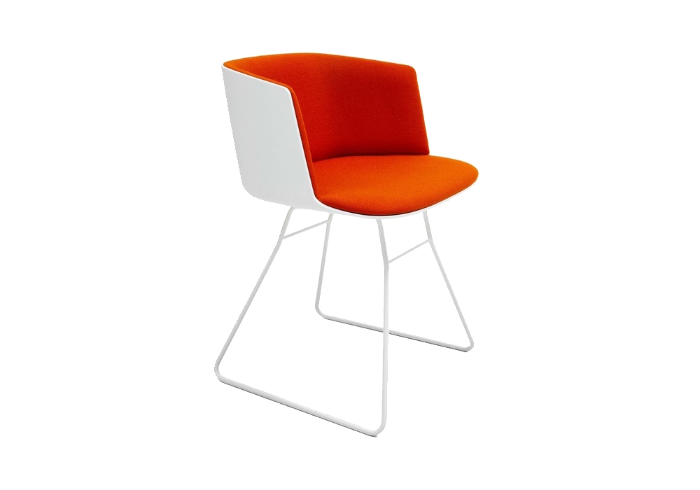 Cut von Francesco Rota für Lapalma ist ein Stuhl mit Kufen in drei Ausführungen. Erhältlich mit weißer oder schwarzer starrer Polyurethanschale und Innenbezug aus Stoff oder Leder.