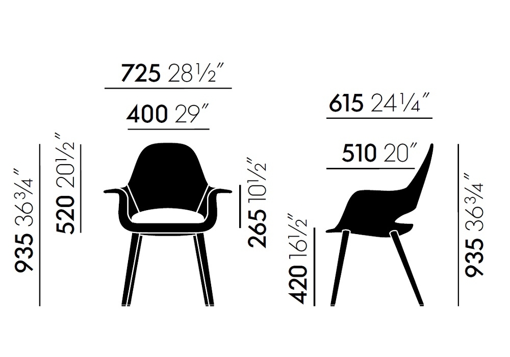 Der Organic Chair – ein komfortabler kleiner Lesesessel – entstand 1940 als Beitrag für den Wettbewerb „Organic Design in Home Furnishings“ des Museum of Modern Art in New York. Formal waren die verschiedenen Varianten des Entwurfes ihrer Zeit voraus.