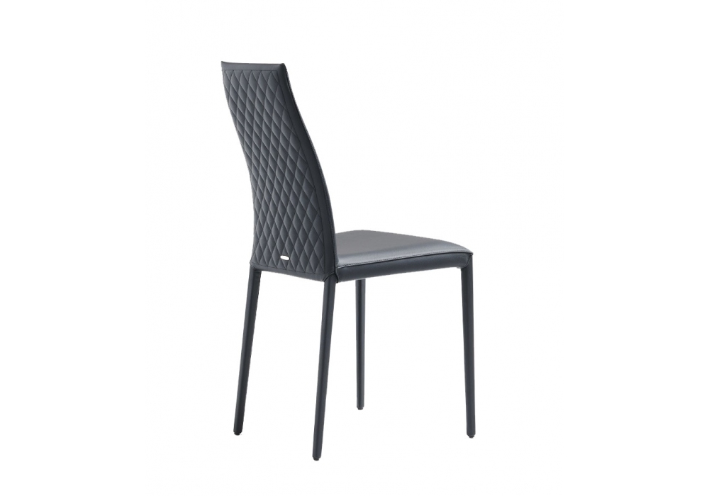 Kay Couture, von Paolo Cattelan für Cattelan Italia entworfen, ist ein gepolsterter Stuhl mit Stahlgestell, vollständig mit Leder, Öko-Leder oder Stoff bezogen. Gesteppte Rückenlehne.
