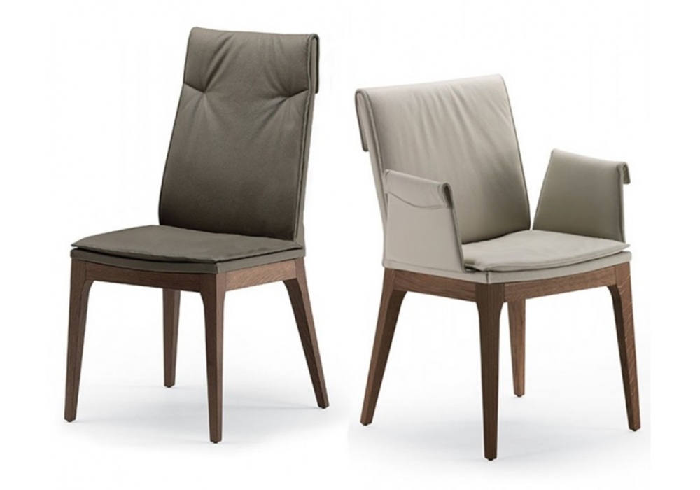 Tosca, von Paolo Cattelan für Cattelan Italia entworfen, ist ein Stuhl mit Eschenholz und Überzug aus Leder, Öko-Leder oder Stoff. Verfügbar in 4 Modellen mit oder ohne Armlehnen.