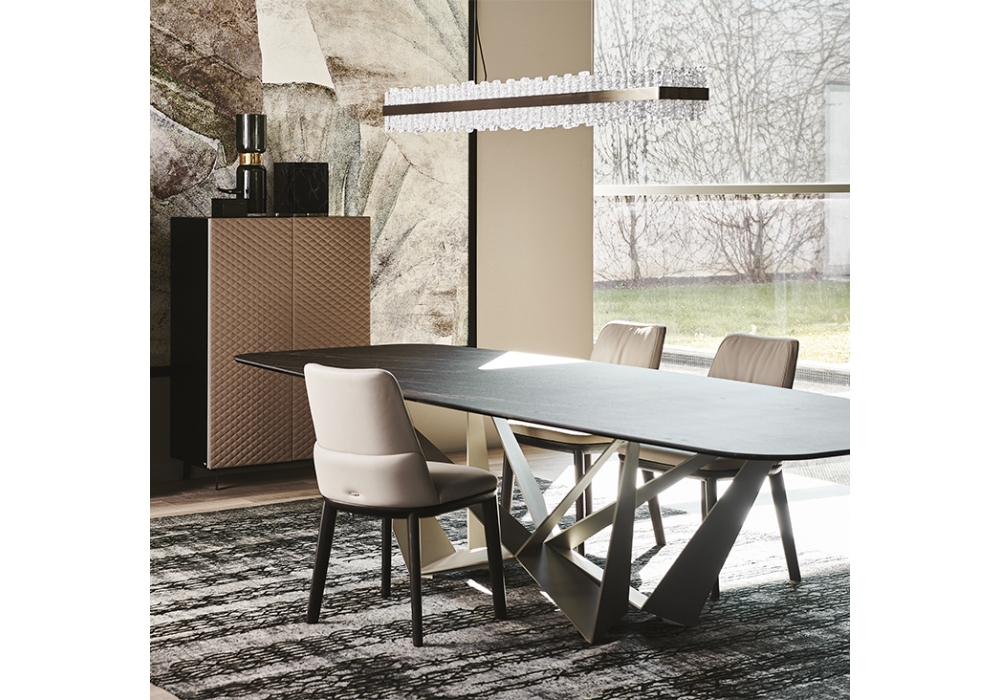 Belinda, von Paolo Cattelan für Cattelan Italia entworfen, ist ein Stuhl mit Eschenstruktur und Überzug aus Leder, Öko-Leder oder Stoff. Verfügbar in verschiedenen Ausführungen.