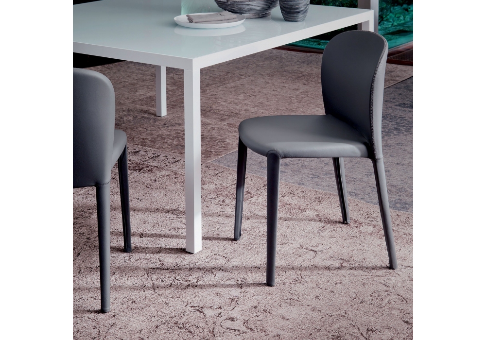 Daisy, von Archirivolto für Cattelan Italia entworfen, ist ein Stuhl mit Stahlkonstruktion und Sitz- und Rückenpolsterung aus Polyurethan. Überzug aus Leder, Öko-Leder oder Stoff.