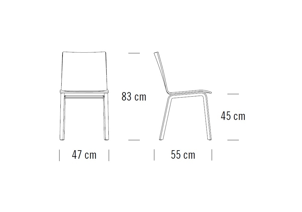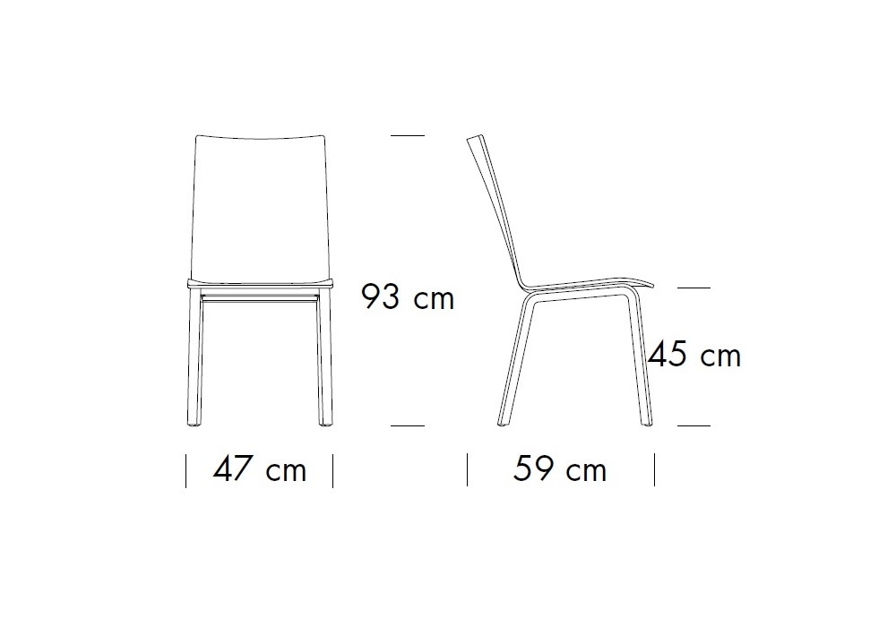 162 / 164 von Delphin Design für Thonet entworfen, ist ein Stuhl mit Beinen und Schale aus gebeizter Buche, verfügbar in 2 Farben und zwei Größen.