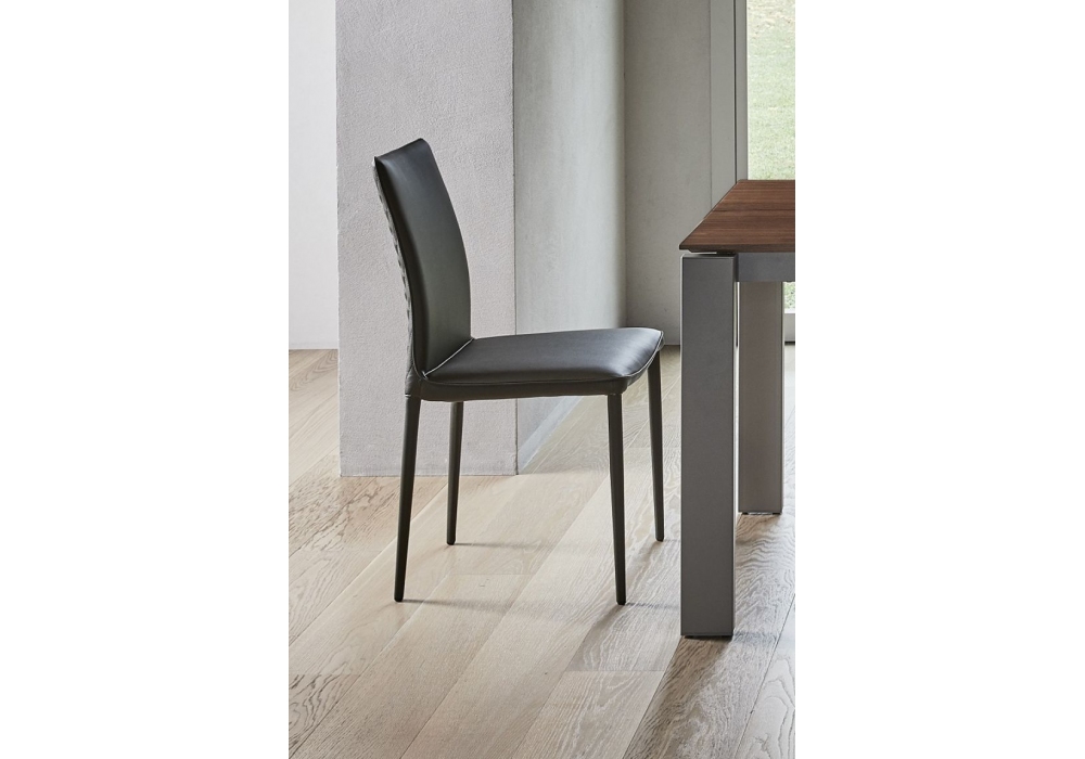 Mila von Daniele Molteni für Bontempi entworfen, ist ein Stuhl aus Metallstruktur und Polsterung, der in verschiedenen Materialien und Ausführungen erhältlich ist. Der Stuhl ist auch in 2 Varianten erhältlich: hohe Rückenlehne und niedrige Rückenlehne.