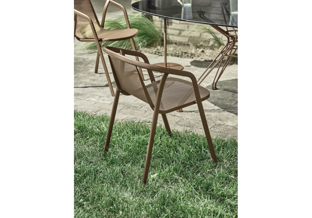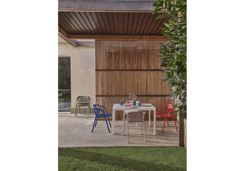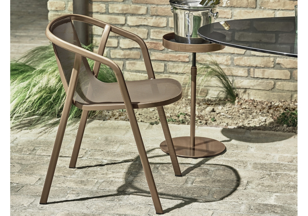 Ines von Pocci & Dondoli für Bontempi ist ein stapelbarer Stuhl aus lackiertem Stahl für den Innen- und Außenbereich. Der Stuhl ist in verschiedenen Ausführungen erhältlich.