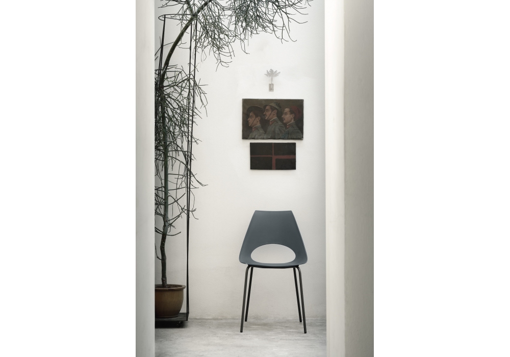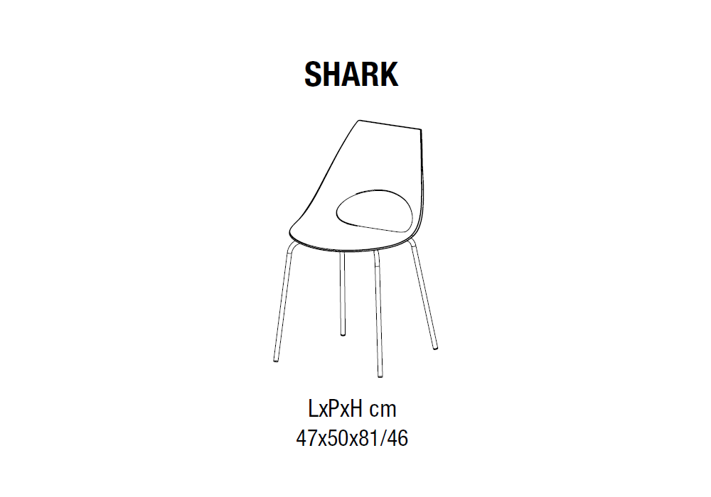 Shark von Yoshino Toshiyuki für Bontempi entworfen, ist ein Stuhl für den Innen- und Außenbereich mit lackierter Stahlkonstruktion und Polypropylenkörper. Der Stuhl ist in verschiedenen Ausführungen erhältlich.