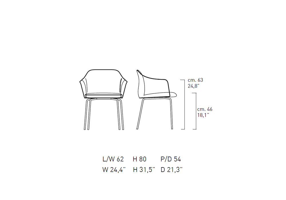 Cloe von Federica Blasa für My Home Collection entworfen, ist ein Stuhl mit Beinen aus lackiertem Stahl, einer Polimexschale, die mit Polyurethanschaum und Polyesterfaser bezogen ist. Stoffbezüge.