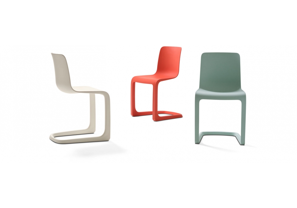EVO-C von Jasper Morrison für Vitra entworfen, ist ein Stuhl aus Vollplastik. Verfügbar in mehreren Ausführungen.