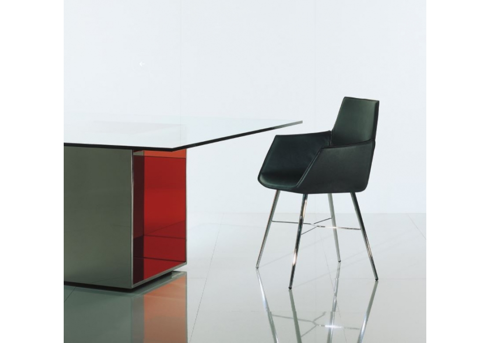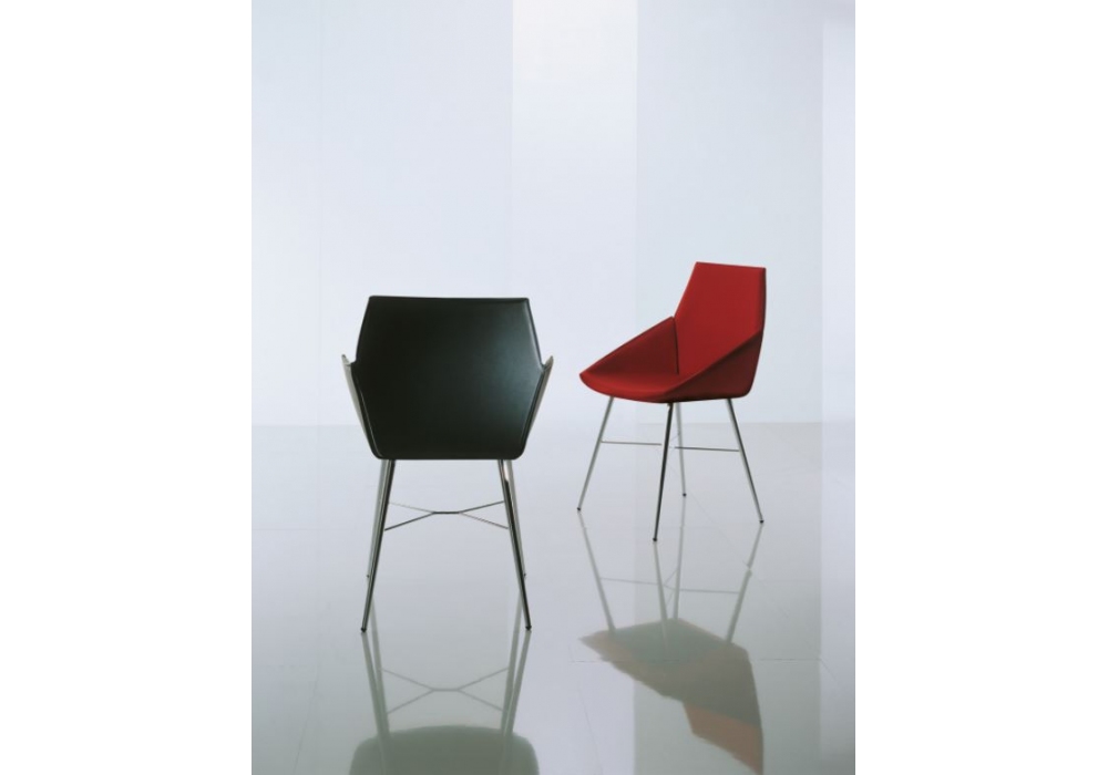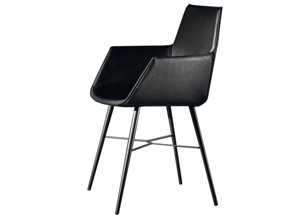 Seltz, entworfen von Jehs + Laub für Acerbis, ist ein Stuhl mit einer Basis aus Chrom oder brüniertem Metall und vollständig mit Leder bezogen. Erhältlich mit oder ohne Armlehnen