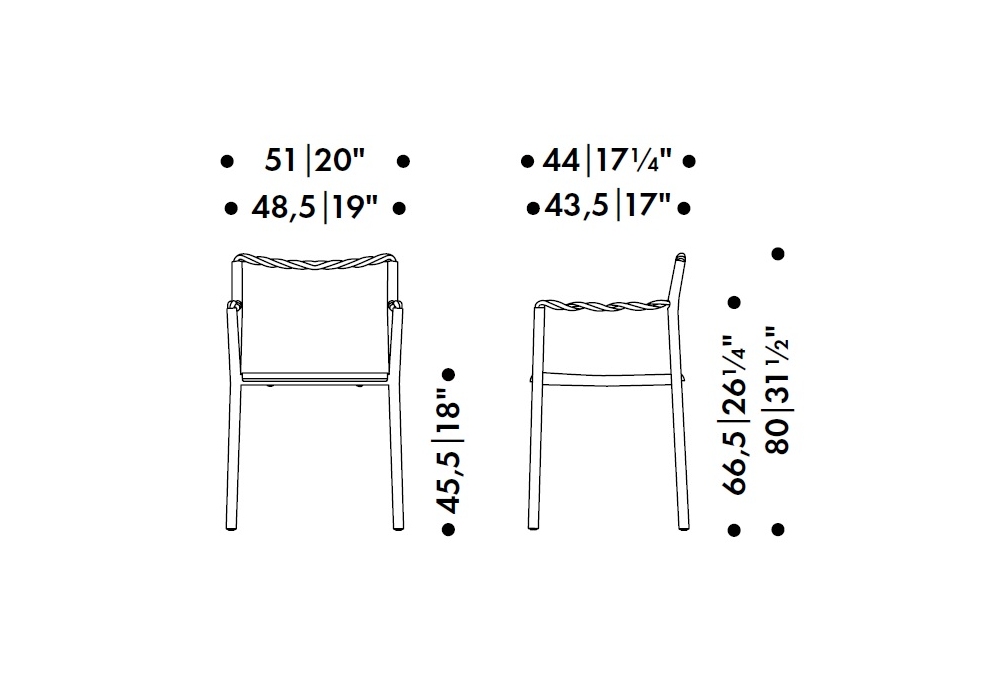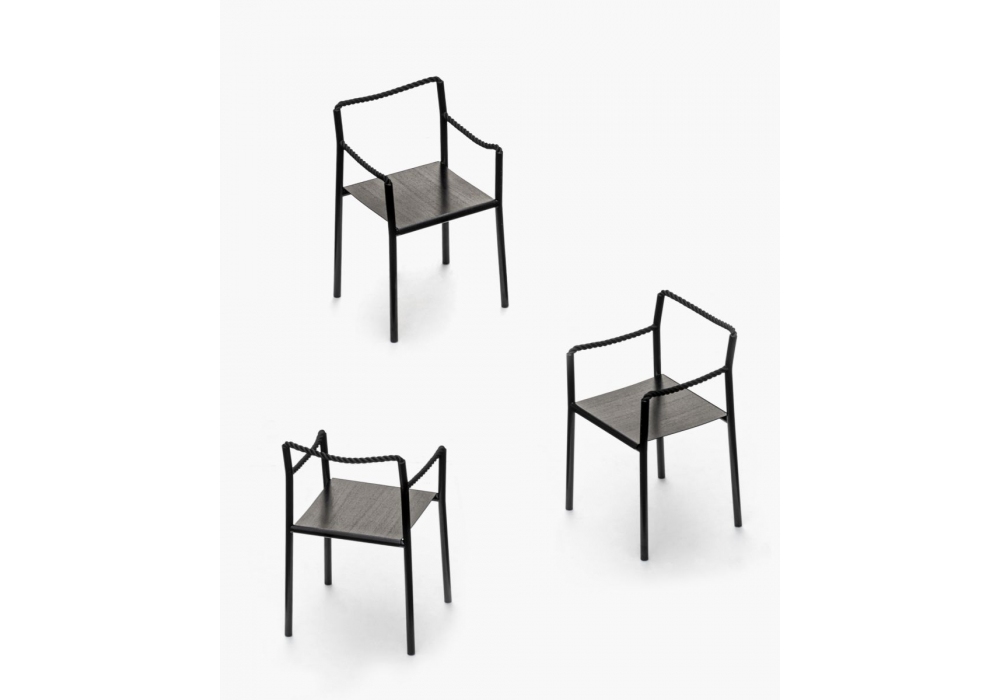 Rope von Ronan & Erwan Bouroullec für Artek entworfen, ist ein Stuhl mit Struktur aus pulverbeschichtetem Stahlrohr und Sitz aus Buchensperrholz. Erhältlich mit Gleitern aus Filz oder Kunststoff.