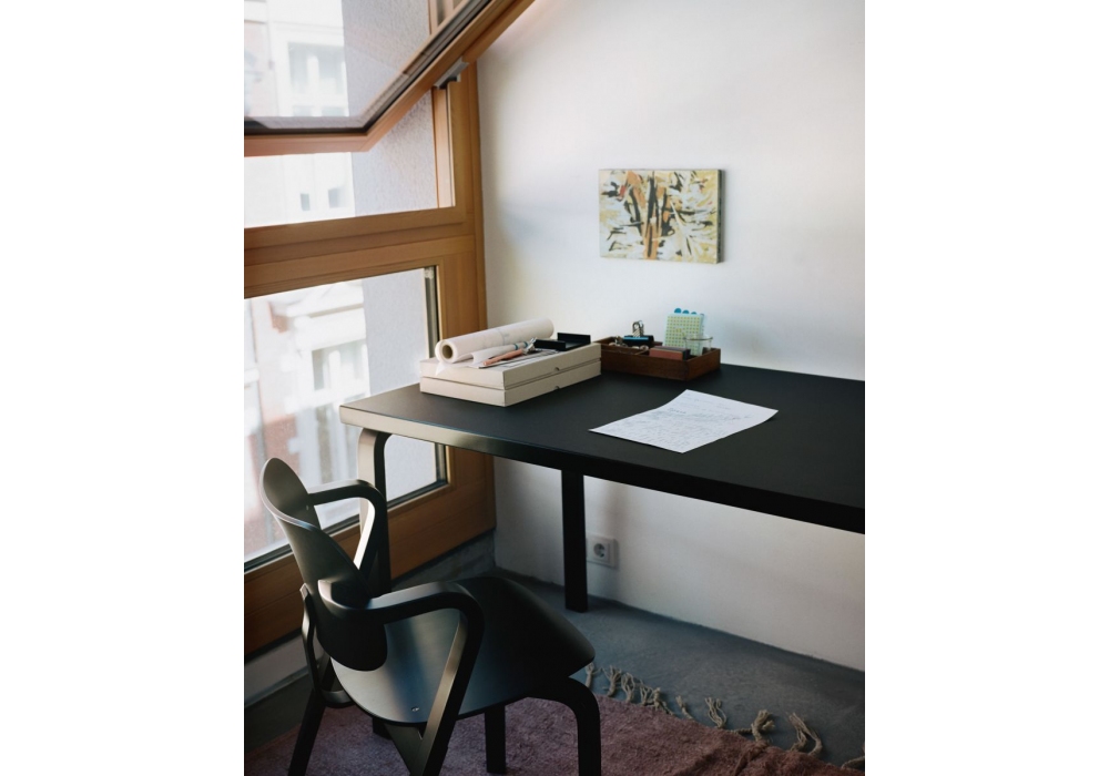 Aslak von Ilmari Tapiovaara für Artek entworfen, ist ein Stuhl mit Sitz und Rückenlehne aus formgepresstem Buchenfurnier und Gestell aus massiver Buche. Verfügbar in mehreren Ausführungen. Filzgleiter montiert, zusätzliche Kunststoffgleiter enthalten.