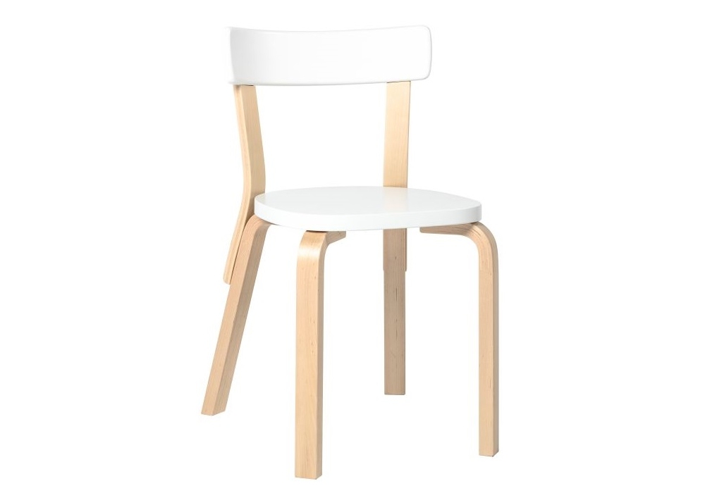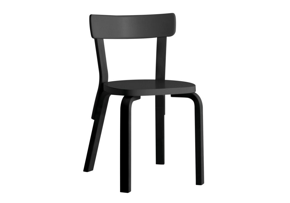 Chair 69 von Alvar Aalto für Artek entworfen, ist ein Stuhl aus Beinen, Sitzkantenband und Rückenlehne aus massiver Birke. Verfügbar in mehreren Ausführungen.
