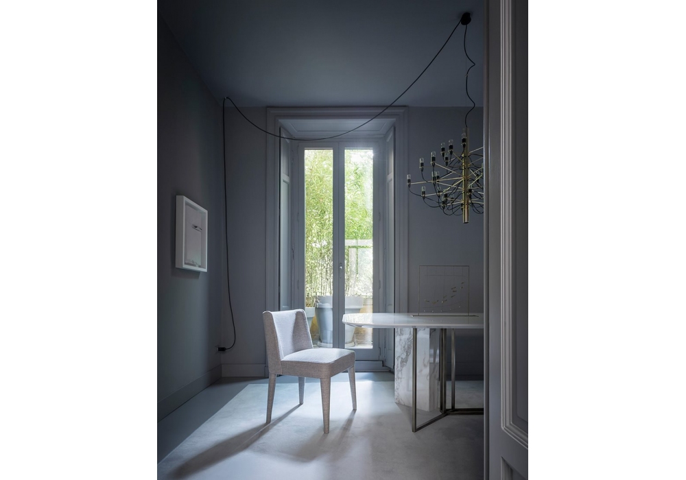 Kita, von Andrea Parisio für Meridiani entworfen , ist ein Stuhl mit verkleidete Füße mit Abziehbarer Stoff bezug. Gestell aus gepresstem Polyurethan mit Einsatzaus Aluminium. Bezug aus Stoff.