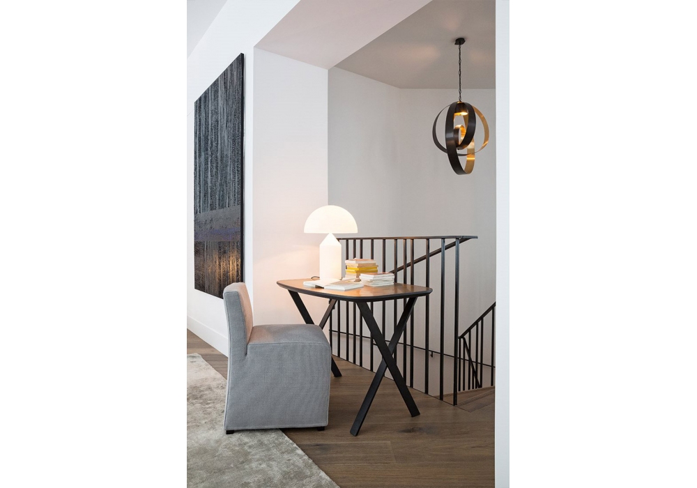 Wess, von Andrea Parisio für Meridiani entworfen , ist ein Stuhl mit Holzgestell und Polsterung aus unverformbaren PU-Schäumen. Holzfüße black gebeizt. Bezug in Stoff oder Leder erhältlich.