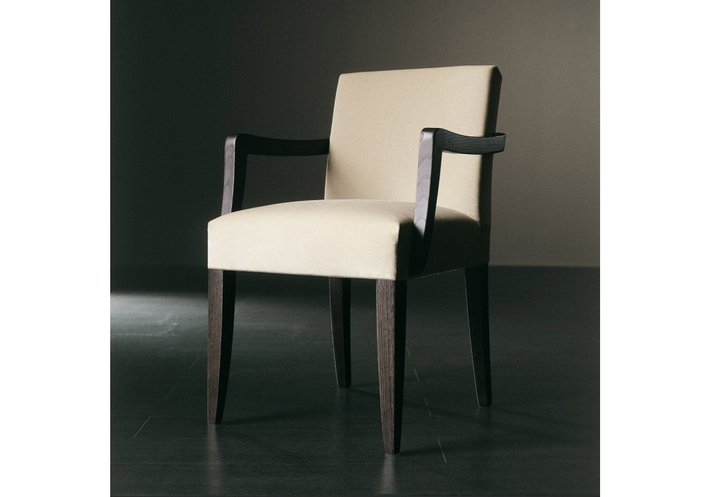 Kerr Due, von Andrea Parisio für Meridiani entworfen , ist ein gepolsterter Stuhl mit Holzarmlehnen, Holzgestell Eiche gebeizt und Polsterung aus unverformbaren PU-Schäumen. Bezug aus Stoff oder Leder erhältlich.
