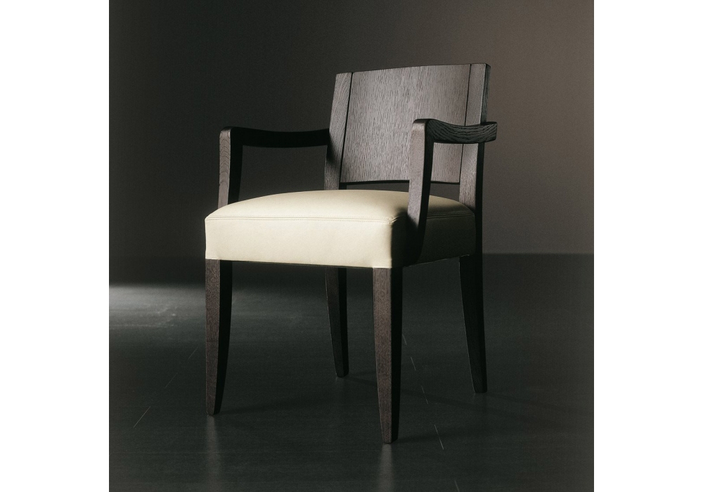 Kerr Quattro, von Andrea Parisio für Meridiani entworfen , ist ein Stuhl mit gepolsterten Sitz. Holzrückenlehnen, Holzarmlehnen und Holzgestell Eiche gebeizt. Polsterung aus unverformbaren PU-Schäumen. Bezug aus Stoff oder Leder erhältlich.