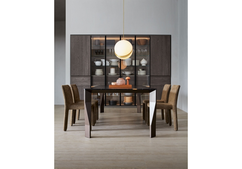 Glove Up von Patricia Urquiola für Molteni&C entworfen, ist ein Stuhl mit geschwungenen Linien. Die Polsterung ist in Leder oder Stoff erhältlich. Der Stuhl ist komplett abnehmbar.