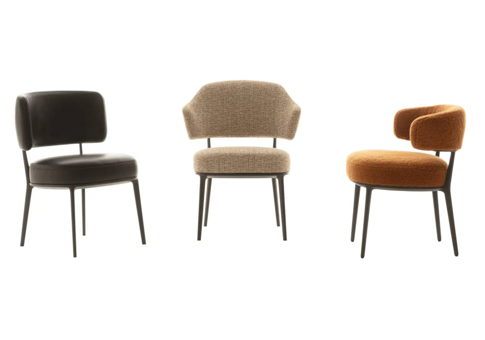 Caratos von Antonio Citterio für Maxalto entworfen, ist ein Stuhl mit lackierter Aluminiumstruktur und Polsterung aus verschiedenen Stoffen oder Ledern. Verfügbar in verschiedenen Modellen.