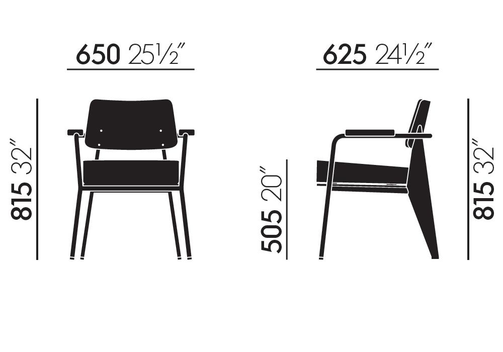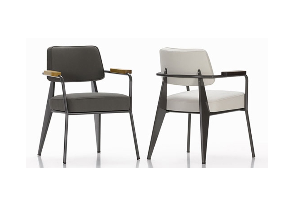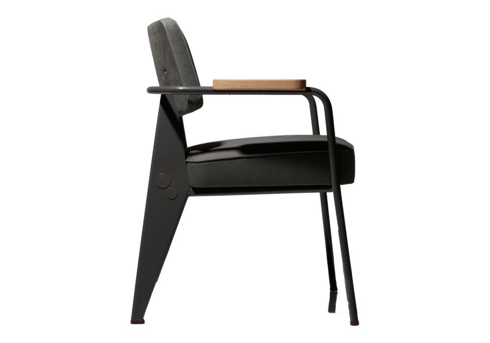 Fauteuil Direction ist ein komfortabler Sessel, mit dem sich bequem am Tisch sitzen lässt. Er spricht die für Prouvé so typische Formensprache der Ausrichtung nach konstruktiven Gesichtspunkten. Der kleine Sessel eignet sich ideal für das Home Office, wo er insbesondere in Kombination mit dem Schreibtisch Compas Direction einen individuellen Akzent setzt, und als bequemer Stuhl am Esstisch.