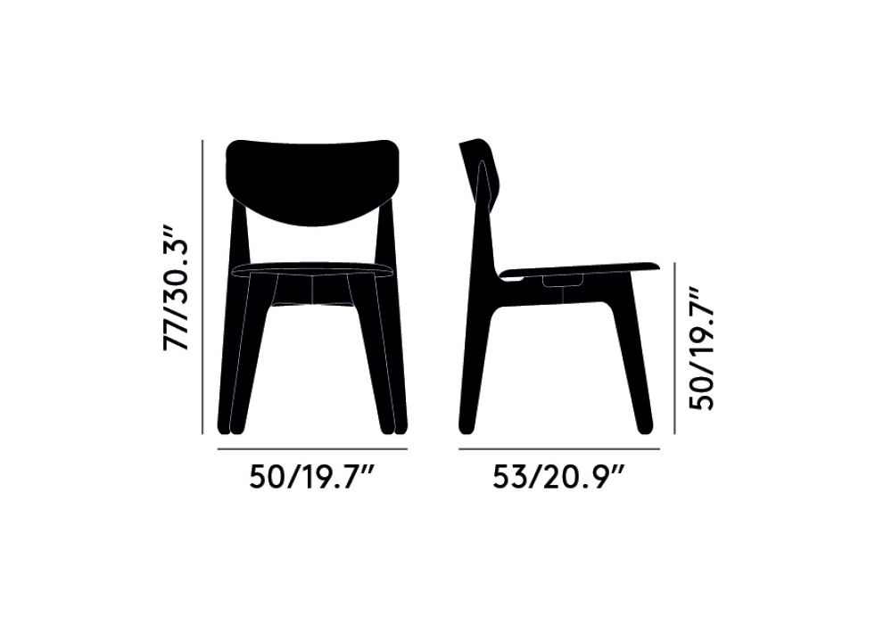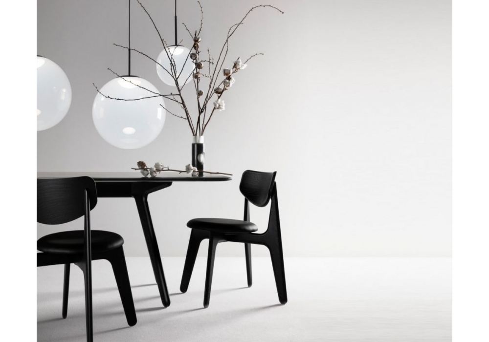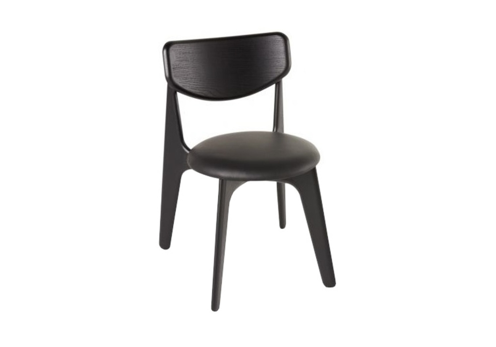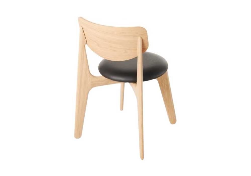 Slab Dining von Tom Dixon entworfen, ist ein Stuhl aus massivem Eichenholz in verschiedenen Ausführungen. Der Stuhl ist auch mit einer gepolsterten Sitzfläche mit schwarzem Lederbezug erhältlich.