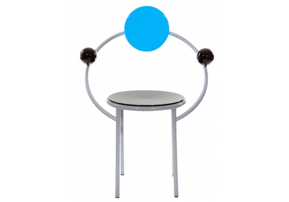 First von Michele De Lucchi für Memphis Milano entworfen, ist ein Stuhl aus Holz und Metall.