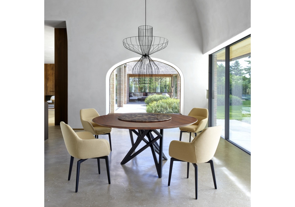 Amédée von Marie Christine Dorner für Ligne Roset entworfen, ist ein Stuhl mit Untergestell in massiver Buche schwarz oder anthrazit gebeizt. Rückenlehne und Armlehnen aus eingespritztem Polyurethanschaum. Sitz aus hochelastischem Bultex-Polyurethanschaum. Bezug aus Stoff oder Leder.