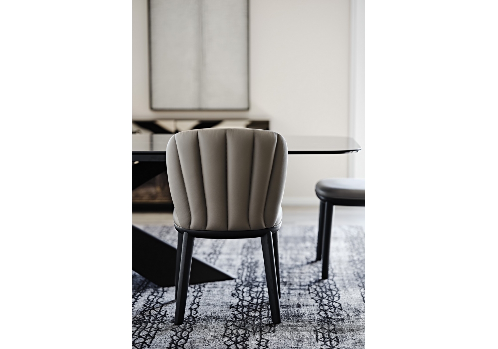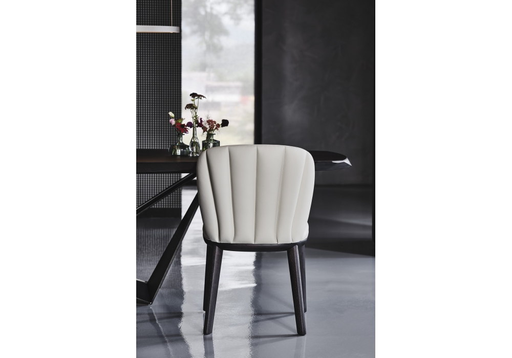 Chrishell, von Paolo Cattelan für Cattelan Italia entworfen, ist ein Stuhl mit gesteppter Schale, Gestell aus lackertem Esche Massivholz und Bezug aus Stoff, synthetic Nubuck, micro Nubuck, Kunstleder oder Softleder verfügbar.