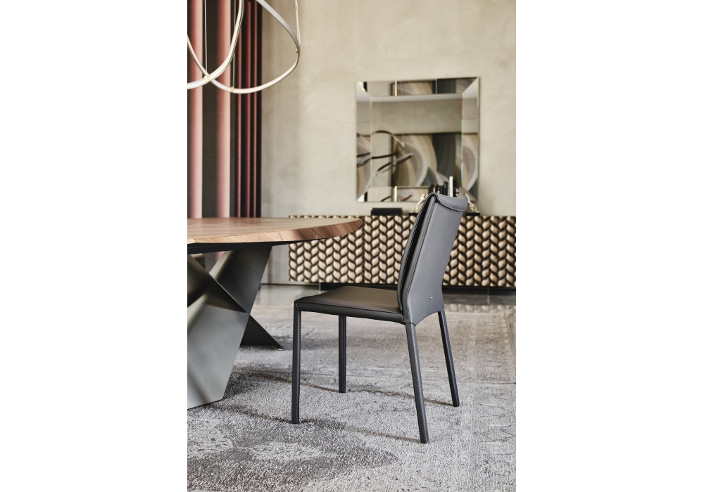 Italia von Paolo Cattelan für Cattelan Italia entworfen, ist ein Stuhl mit oder ohne Armlehnen und Struktur aus Metall. Bezug aus Stoff, Kunstleder, synthetic nubuck, micro nubuck oder Softleder.